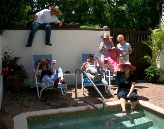 1st picture L-R: Mike (sitting on the wall), Ellie, Patrick, Anna & Bozena (standing), Max, Carolee (dangling her legs in the pool).